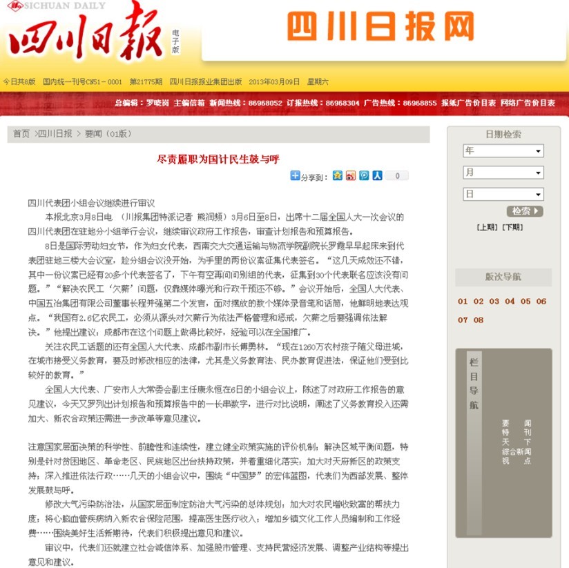 四川日報(bào)報(bào)道:盡責(zé)履職為國計(jì)民生鼓與呼