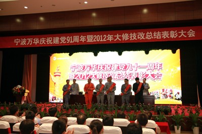 最近,寧波萬華聚氨酯有限公司召開2012年大修技改總結表彰大會對五冶集團上海有限檢修公司本次年大修工作給予充分肯定,并頒發(fā)“特殊貢獻獎”予以鼓勵。